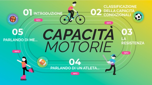 Le capacità motorie sono le abilità che permettono di eseguire movimenti complessi e di coordinare l’uso dei muscoli. Si suddividono in due macro-categorie: le capacità condizionali e le capacità coordinative. Le prime sono legate al livello di energia e forza disponibile per eseguire un movimento, mentre le seconde dipendono dal controllo e dalla regolazione del movimento. Queste capacità includono forza, velocità, resistenza, e flessibilità (condizionali), e coordinazione, equilibrio, e ritmo (coordinative). La combinazione di queste abilità permette di migliorare la performance sportiva, ottimizzare il movimento e ridurre il rischio di infortuni.