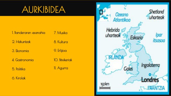 -Londres Europako hiririk handiena da -30.000 'John Smith' daude Ingalaterran -Duela mende asko frantsesa hizkuntza ofiziala zan Ingalaterran. -Londreseko “Big Ben” famatua kanpaiaren izena da, ez dorrearena. Dorreak "Elisabeth Dorrea" du izen.