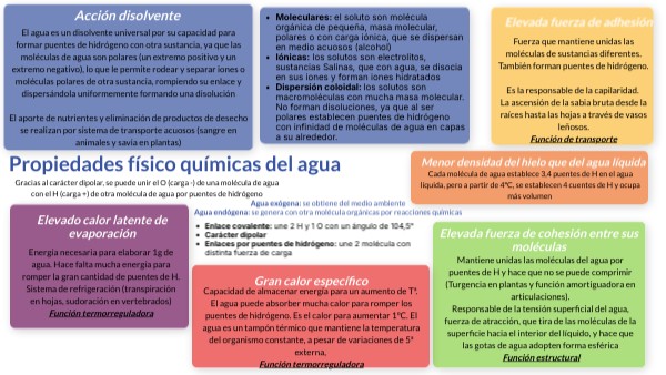Mantiene unidas las moléculas del agua por puentes de H y hace que no se puede comprimir (Turgencia en plantas y función amortiguadora en articulaciones). Responsable de la tensión superficial del agua, fuerza de atracción, que tira de las moléculas de la superficie hacia el interior del líquido, y hace que las gotas de agua adopten forma esférica Función estructural