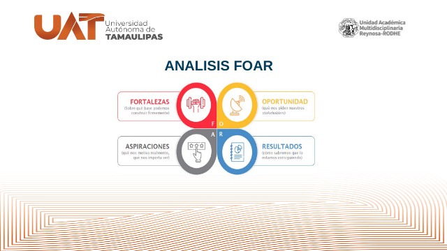 El análisis FOAR o SOAR (su equivalente en inglés) nos sirve para que reflexionemos sobre cuatro elementos: Fortalezas, Oportunidades, Aspiraciones y Resultados. El análisis FOAR es un enfoque estratégico que transforma el Modelo DAFO (Debilidades, Amenazas, Fortalezas y Oportunidades) en un FOAR (Fortalezas, Oportunidades, Aspiraciones y Resultados). FOAR es un marco que involucra en la conversación estratégica a todas las personas que participan o contribuyen en una organización (todos los grupos de interés). Se genera energía y vínculo que impulsa el despliegue de las acciones decididas.