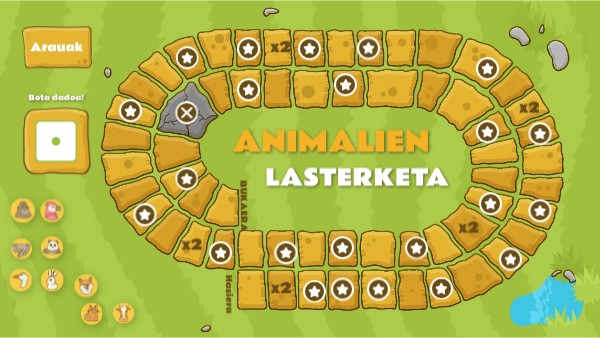 • Banaka jolastuko dugu. Bakoitzak animalia aukeratuko du. Ondoren dadoa botako du. Zenbaki handiena lortzen duen taldea hasiko da.