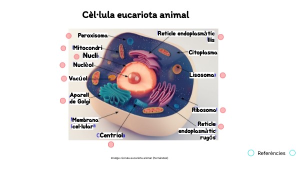 Sánchez González D.J, Trejo Bahena N. I. Capitul 3, Citoplasma. Biología celular y molecular. Vacuolas. Editorial Alfil. 2006. p. 80. Disponible a: https://elibro.net/es/ereader/uoc/72726 Etecé .Els centríols [Imatge] [consultat el 4 de novembre de 2025].. Disponible a: http://www.xtec.cat/~jgurrera/golgi.htm Sánchez González D.J, Trejo Bahena N. I. Capitul 3, Citoplasma. Biología celular y molecular. Ribosomes. Editorial Alfil. 2006. p. 71-77. Disponible a: https://elibro.net/es/ereader/uoc/72726 Susan S. Ribosomes. ¿Qué son? Definición, Tipos y Funciones [imatge]. Buscador.com 2020. Disponible a: https://www.buscador.com/ribosomas/ Enciclopedia Concepto. Lisosomas – Qué son, características, funciones y estructura [Internet]. Enciclopedia Concepto; c2013–2023 [consultat: 5 nov. 2025]. Imatge disponible en: https://concepto.de/lisosomas/ Megías M, Molist P, Pombal MA. Centriolos y cuerpos basales. Atlas de histología vegetal y animal. 2023. Disponible a: https://mmegias.webs.uvigo.es/5-celulas/ampliaciones/7-centriolo-a.php Sánchez González D.J, Trejo Bahena N. I. Capitul 4, Núcleo celular, estructura y expresión génica. Nucleolo. Biología celular y molecular. Editorial Alfil. 2006. p. 102-104. Disponible a: https://elibro.net/es/ereader/uoc/72726 Sánchez González D.J, Trejo Bahena N. I. Capitul 3, Citoplasma. Biología celular y molecular. Membrana celular. Editorial Alfil. 2006. p. 49-50. Disponible a: https://elibro.net/es/ereader/uoc/72726 Sánchez González D.J, Trejo Bahena N. I. Capitul 3, Citoplasma. Biología celular y molecular. Citoplasma. Editorial Alfil. 2006. p. 49. Disponible a: https://elibro.net/es/ereader/uoc/72726 Enciclopedia Humanidades. Ribosoma: definición, historia, estructura y características [Imatge]. 9 de juny de 2016; [consultat 5 de novembre de 2025]. Disponible a: https://humanidades.com/ribosoma/ Diferenciador. Partes de la célula animal y sus funciones [Imatge]. Diferenciador; c2018–2025 [consultat 7 de novembre de 2025]. Disponible en: https://www.diferenciador.com/partes-de-la-celula-animal/