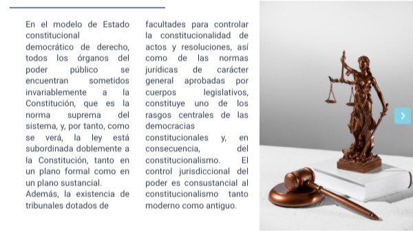 facultades para controlar la constitucionalidad de actos y resoluciones, así como de las normas jurídicas de carácter general aprobadas por cuerpos legislativos, constituye uno de los rasgos centrales de las democracias constitucionales y, en consecuencia, del constitucionalismo. El control jurisdiccional del poder es consustancial al constitucionalismo tanto moderno como antiguo.