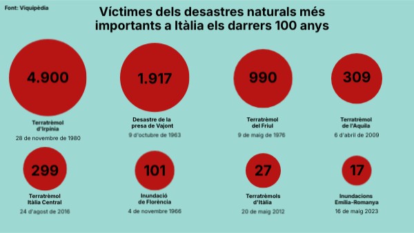 Víctimes dels desastres naturals més importants a Itàlia els darrers 100 anys
