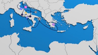 Gli Achei approdano alla foce del Po e perdono le navi in un incendio appiccato dai Peleset per vendetta.Successivamente Diomede parte coi compagni verso Sud.