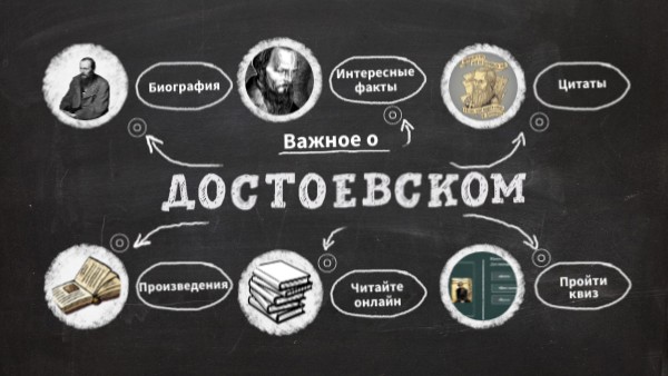 1. Достоевский был дворянином, но так и не узнал об этом. 2. Юный Достоевский учился читать по религиозным книгам. 3. Своим любимым литератором Фёдор Достоевский считал Пушкина. 4. Достоевский очень любил крепкий чёрный чай и пил его так часто, что для него всегда держали наготове горячий самовар. 5. В романе «Бесы» Достоевский описал революционеров из кружка Петрашевского. 6. За переписку с опальным Белинским и публичное чтение его писем Достоевский в 1849 году был приговорён к смертной казни, но в итоге приговор был заменён на каторжные работы. 7. Родной брат Достоевского тоже был литератором. Они вместе издавали два журнала, но после смерти брата писатель остался с огромной кучей долгов, которые ему пришлось выплачивать почти до конца жизни. 8. В «Преступлении и наказании» Достоевский описывал реально существующие в Петербурге места. Вдохновение он находил, гуляя по городу. 9. Все свои самые известные романы Достоевский написал в течение последнего десятилетия своей жизни. 10. На протяжении практически всей своей жизни Достоевский был пристрастен к азартным играм. 11. Писатель за свою жизнь побывал во Франции, Италии, Австрии, Англии, Швейцарии и Германии. 12. Пять самых масштабных романов писателя получили название «Великое пятикнижие». 13. Достоевский был глубоко религиозным человеком.