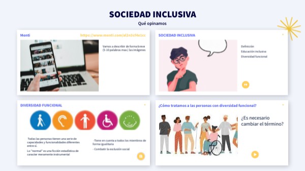 Aquella sociedad que reconoce la diversidad de sus miembros, en la que se garantiza la inclusión, la igualdad de oportunidades y la capacidad de todos los miembros que la conforman. En esencia, es aquella que considera que todas las personas que la forman tienen los mismos derechos y oportunidades. (ONCE)