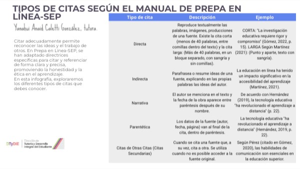 Tipos de Citas según el Manual de Prepa en Línea-SEP