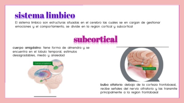 El sistema limbico son estructuras situadas en el cerebro las cuales se en cargan de gestionar emociones y el comportamiento, se divide en la region cortical y subcortical
