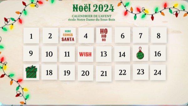 CALENDRIER DE L'AVENTécole Notre Dame du Sous-Bois