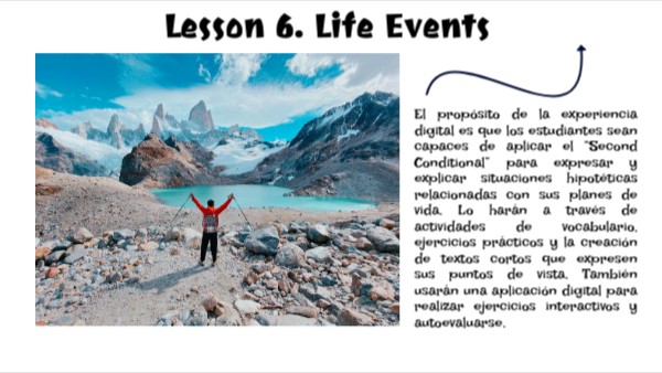El propósito de la experiencia digital es que los estudiantes sean capaces de aplicar el “Second Conditional” para expresar y explicar situaciones hipotéticas relacionadas con sus planes de vida. Lo harán a través de actividades de vocabulario, ejercicios prácticos y la creación de textos cortos que expresen sus puntos de vista. También usarán una aplicación digital para realizar ejercicios interactivos y autoevaluarse.