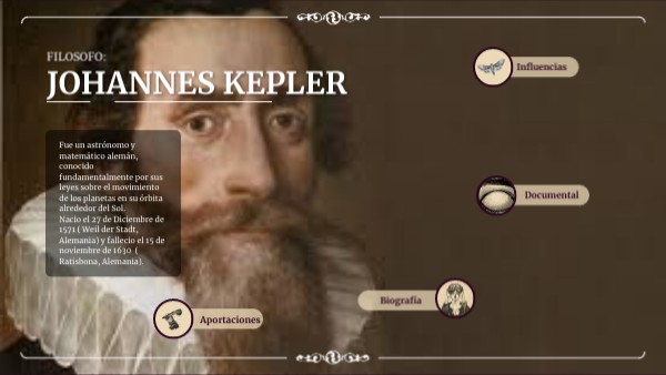 Fue un astrónomo y matemático alemán, conocido fundamentalmente por sus leyes sobre el movimiento de los planetas en su órbita alrededor del Sol. Nacio el 27 de Diciembre de 1571 ( Weil der Stadt, Alemania) y fallecio el 15 de noviembre de 1630 ( Ratisbona, Alemania).