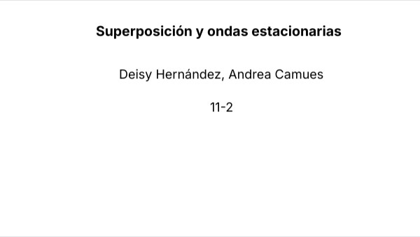 Superposición y ondas estacionarias: Superposición: Es el principio que dice que cuando dos o más ondas se encuentran, la onda resultante es la suma de sus amplitudes. Puede causar interferencia constructiva (amplitud mayor) o destructiva (amplitud menor). Ondas Estacionarias: Son ondas que no se propagan, sino que permanecen fijas en el espacio, formadas por la interferencia de dos ondas que viajan en direcciones opuestas. Tienen puntos fijos llamados nodos (sin movimiento) y antinodos (máximo movimiento).