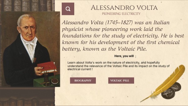 Here, you will ; Learn about Volta's work on the nature of electricity, and hopefully understand the relevance of the Voltaic Pile and its impact on the study of electrical current !