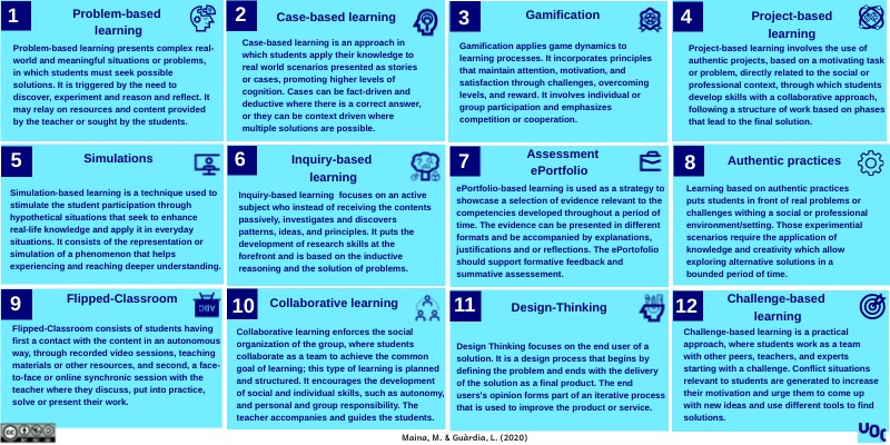 Problem-based learning presents complex real-world and meaningful situations or problems, in which students must seek possible solutions. It is triggered by the need to discover, experiment and reason and reflect. It may relay on resources and content provided by the teacher or sought by the students.