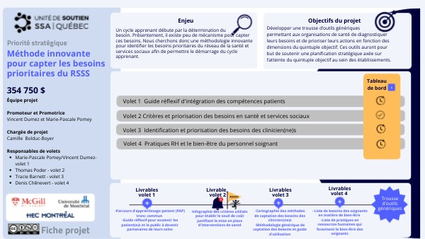 Un cycle apprenant débute par la détermination du besoin. Présentement, il existe peu de mécanisme pour capter ces besoins. Nous cherchons donc une méthodologie innovante pour identifier les besoins prioritaires du réseau de la santé et services sociaux afin de permettre le démarrage du cycle apprenant.