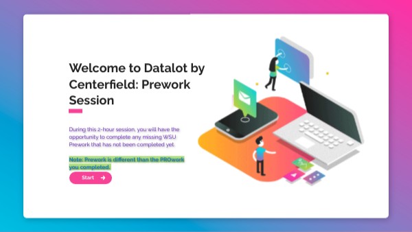 During this 2-hour session, you will have the opportunity to complete any missing WSU Prework that has not been completed yet. Note: Prework is different than the PROwork you completed.