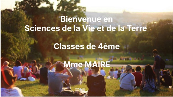 Bienvenue en Sciences de la Vie et de la Terre Classes de 4ème Mme MAIRE
