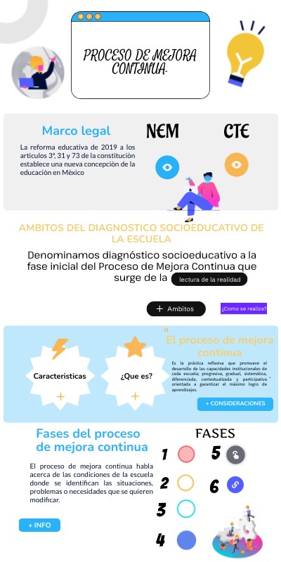 El proceso de mejora continua habla acerca de las condiciones de la escuela donde se identifican las situaciones, problemas o necesidades que se quieren modificar.