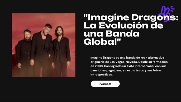 Imagine Dragons es una banda de rock alternativo originaria de Las Vegas, Nevada. Desde su formación en 2008, han logrado un éxito internacional con sus canciones pegajosas, su estilo único y sus letras introspectivas.