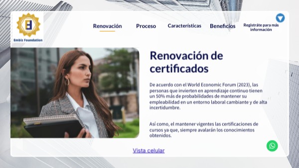 Embiz Foundation esta a la vanguardia de las necesidades actuales y busca que para renovar tus certificados siempre te lleves más. Es por ello, que te ofrece un curso en tendencia que te va a posicionar para aprovechar las oportunidades que ofrecen los sectores más dinámicos y en crecimiento, brindándote las herramientas necesarias para tener éxito en un entorno profesional cada vez más competitivo y sobre todo en constante transformación.