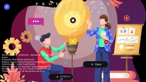 Nombre de la institución educativa: Universidad Iexpro Posgrado: Maestría En Educación Materia: Desarrollo De Proyectos De Mejora Continua Cuatrimestre: Cuarto Cuatrimestre Nombre del alumno: Azucena Yamilet León Aguilar Nombre del docente: Dra. Araceli Pedroza Serrano Tuxtla gutierrez a 10 de Noviembre del 2024