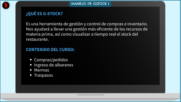 ¿QUÉ ES G-STOCK? Es una herramienta de gestión y control de compras e inventario. Nos ayudará a llevar una gestión más eficiente de los recursos de materia prima, así como visualizar a tiempo real el stock del restaurante. CONTENIDO DEL CURSO: