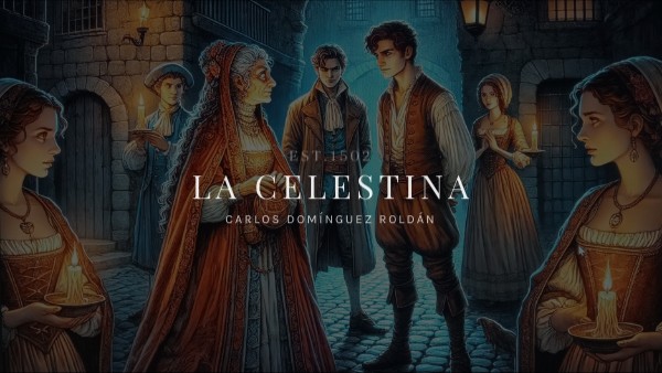 "calisto fue de noble linaje, claro ingenio, linda crianza, gentil caballero, dotado de muchas gracias. fue preso del amor de melibea, mujer moza, generosa, de alta y serenisima sangre, sublimada en próspero estado, única heredera de su padre pleberio y su madre alisa. por solicitud de calisto, vencido del casto propósito de ella (con la intervención de celestina, mala y astuta mujer, con dos sirvientes del vencido calisto, engañados), vinieron los amantes y los que ministraron en amargo y desatado fin. para comienzo de lo cual dispuso la adversa fortuna lugar oportuno, donde a la presencia de calisto se presentó la deseada melibea."