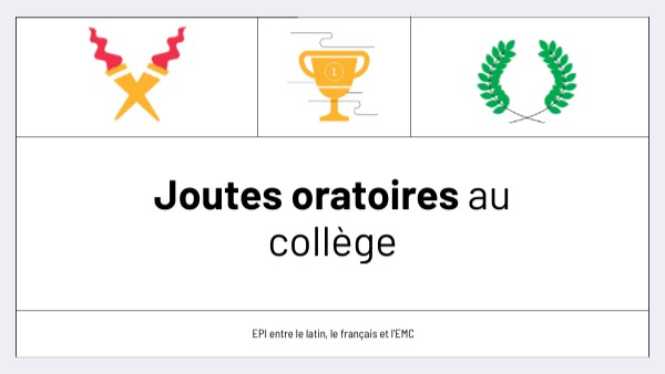 L’objectif de cette séance est de s’approprier les discours étudiés lors de la séance précédente pour s’entrainer à la prise de parole puis à la déclamation, afin de préparer les joutes.