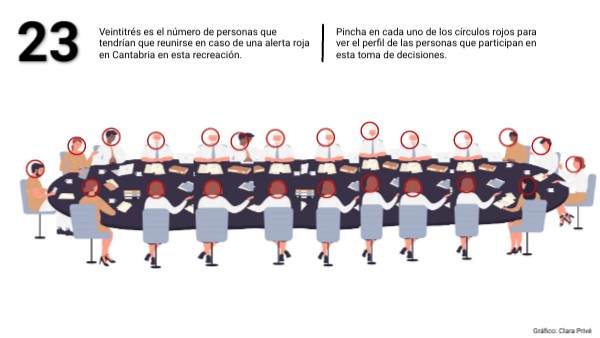Pincha en cada uno de los círculos rojos para ver el perfil de las personas que participan en esta toma de decisiones.