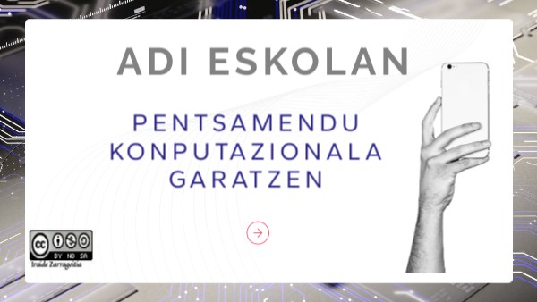 Lehen Hezkuntza. Curricularekin lotura.NATURA, GIZARTE ETA KULTURA INGURUNEAREN EZAGUTZA: Konpetentzia espezifikoa: [3] Arazo egoerak diziplinarteko proiektuen bidez ebaztea, diseinu pentsamendua eta pentsamendu konputazionala erabiliz, premia zehatzei erantzungo dien produktu sortzaile eta berritzaile bat lankidetzan sortzeko. MATEMATIKA: Zentzu aljebraikoak eta pentsamendu konputazionalak matematika komunikatzeko hizkuntza eskaintzen dute. Aldagaien arteko patroiak eta erlazioak ezagutzea, erregulartasunak adieraztea edo egoerak adierazpen sinbolikoen bidez modelizatzea dira funtsezko ezaugarriak. Konpetentzia espezifikoa:[4] Pentsamendu konputazionala erabiltzea datuak antolatuz, zatika deskonposatuz, patroiak ezagutuz, orokortuz eta interpretatuz, eta algoritmoak modu gidatuan aldatuz eta sortuz, eguneroko bizitzako egoerak modelizatzeko eta automatizatzeko.