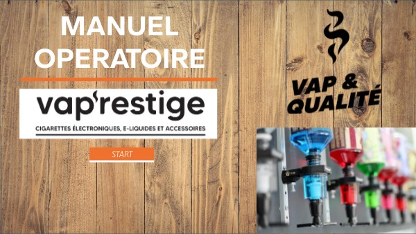 L'objectif principal, dans un secteur concurrentiel, tel que le secteur des cigarettes électroniques, est de FIDELISER la clientèle. Pour cela, au sein de VAP'RESTIGE, nous accordons une importance particulière aux points suivants : L'ACCUEIL LE CONSEIL LE CHOIX DES PRODUITS LES TARIFS PRATIQUES