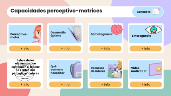 Los contenidos de tipo perceptivo son susceptibles de aprendizaje y como tal requieren de movimiento y de la puesta en práctica de las actividades motrices.