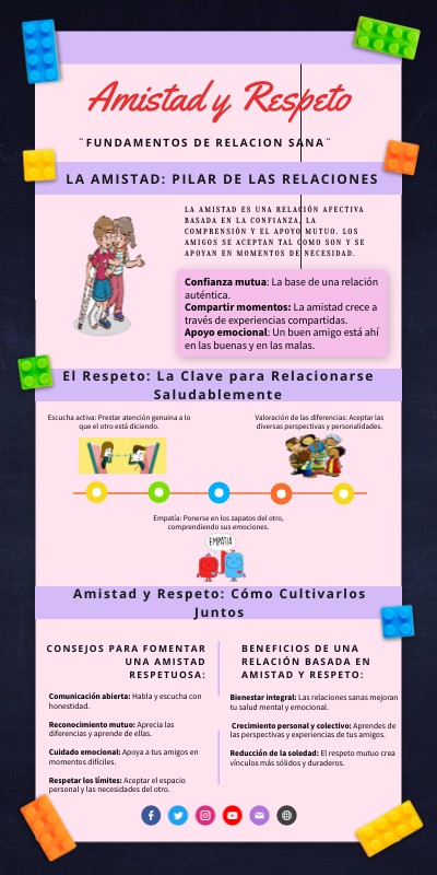 Bienestar integral: Las relaciones sanas mejoran tu salud mental y emocional. Crecimiento personal y colectivo: Aprendes de las perspectivas y experiencias de tus amigos. Reducción de la soledad: El respeto mutuo crea vínculos más sólidos y duraderos.