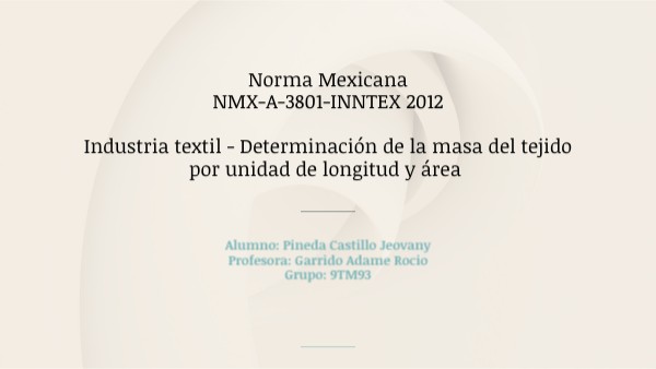 Norma Mexicana NMX-A-3801-INNTEX 2012 Industria textil - Determinación de la masa del tejido por unidad de longitud y área