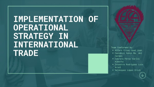 Implementing an operational strategy in international trade requires a well-defined structure that ensures the achievement of strategic objectives in a global environment. This presentation examines the superstructure, macrostructure, and microstructure of the operational strategy, focusing on how each level contributes to success in international markets, using concepts from the "Balanced Score Card" and the "CG Model."