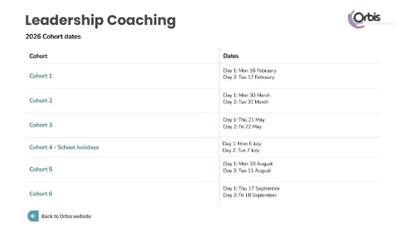 Leadership Coaching program dates 2026