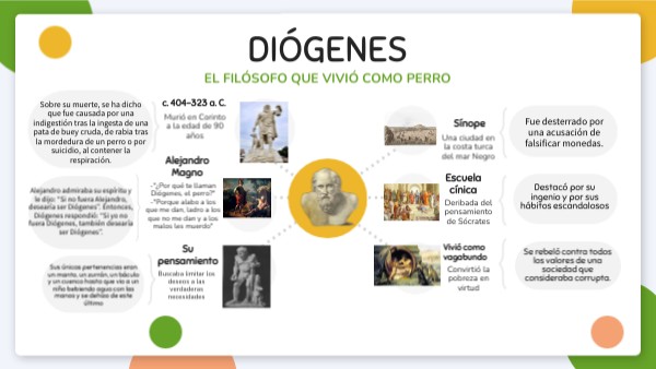 Alejandro admiraba su espíritu y le dijo: “Si no fuera Alejandro, desearía ser Diógenes”. Entonces, Diógenes respondió: “Si yo no fuera Diógenes, también desearía ser Diógenes”.