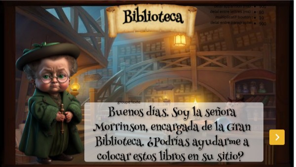 Buenos días. Soy la señora Morrinson, encargada de la Gran Biblioteca. ¿Podrías ayudarme a colocar estos libros en su sitio?