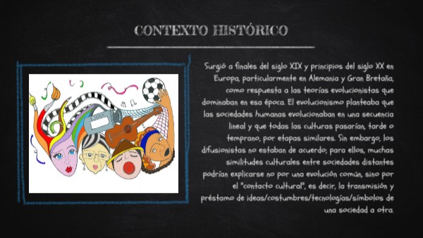 Los difusionistas consideraban que la cultura era una entidad única y universal que se expandía desde unos pocos centros de civilización en el mundo. Según esta teoría, sólo algunos pueblos tenían la capacidad de innovar, mientras que los demás simplemente imitaban o adopaban esos avances. Con el tiempo, esta visión fue criticada por su enfoque eurocentrista y por subestimar la capacidad de creación autónoma de las culturas locales. Hoy sabemos que las culturas no sólo imitan, sino que tambíen se adaptan, transforman, y crean activamente en respuesta a sus propios contextos y necesidades.