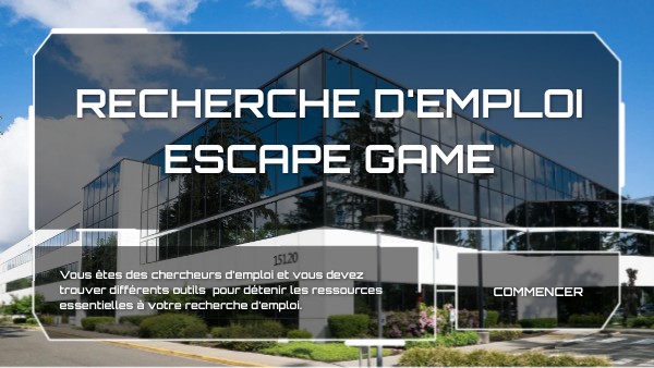 Vous êtes aujourd’hui dans un centre de recherche d’emploi high-tech, mais une panne informatique imprévue a verrouillé toutes les portes. Pour en sortir, vous allez devoir collaborer, faire preuve de créativité et, surtout, mettre en œuvre les stratégies de recherche d’emploi les plus efficaces. En suivant des indices, en résolvant des énigmes et en explorant différentes méthodes de recherche d’emploi, vous allez reconstituer toutes les étapes d’une candidature réussie ! À chaque étape, vous testerez vos compétences et découvrirez des astuces pour transformer votre parcours de recherche d’emploi en véritable mission. Si vous parvenez à déjouer tous les pièges et à résoudre toutes les énigmes, la porte de sortie s’ouvrira... mais le temps est compté ! À vous de jouer : bonne chance, et que la stratégie soit avec vous !