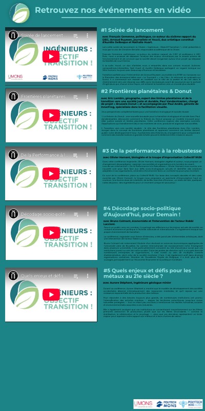 Lors cette soirée de lancement, la Chaire « Ingénieurs : Objectif Transition ! » s’est présentée à nous par la voix de Christine Renotte, responsable académique de la Chaire. François Gemenne, politologue, co-auteur du sixième rapport du GIEC et professeur à HEC Paris, nous a proposé de dépasser l’analyse des enjeux climatiques par le simple prisme de l’environnement et de conclure que la société devait s’organiser autour d’un projet qui dépasse les fatalités de court-terme. A sa suite, Youcii, un duo d’artistes nous a emportés dans son univers musical. Autrices-compositrices-interprètes, Nati Huart et Aurélie Delbeque partagent un regard ironique sur l'être humain, toujours avec beaucoup d’humour et tendresse. Transition parfaite pour l’intervention de Arnaud Ruyssen, journaliste à la RTBF où il propose, sur la Première, des émissions telles que « Le Tournant », « les Clés » (à retrouver en podcasts sur Auvio). Il a commençé son exposé en insistant sur le rôle de la poésie et de l’art dans le cheminement vers une réponse aux défis socio-écologiques avant de poursuivre par le portrait d’ingénieurs qui, chacun à leur façon, ont entamé la transition vers un monde plus durable.