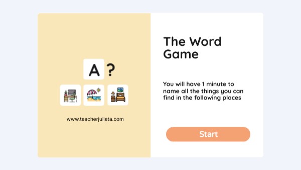 You will have 1 minute to name all the things you can find in the following places