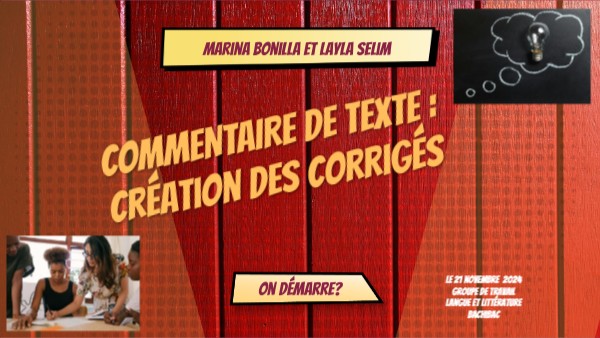COMMENTAIRE DE TEXTE : Création des corrigés