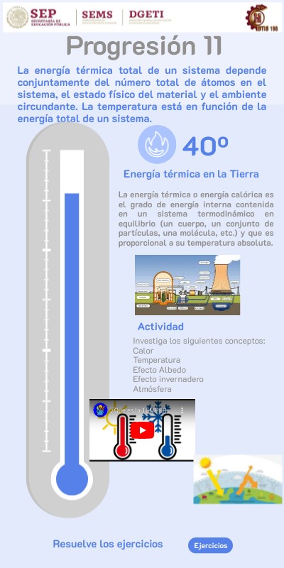 La energía térmica o energía calórica es el grado de energía interna contenida en un sistema termodinámico en equilibrio (un cuerpo, un conjunto de partículas, una molécula, etc.) y que es proporcional a su temperatura absoluta.