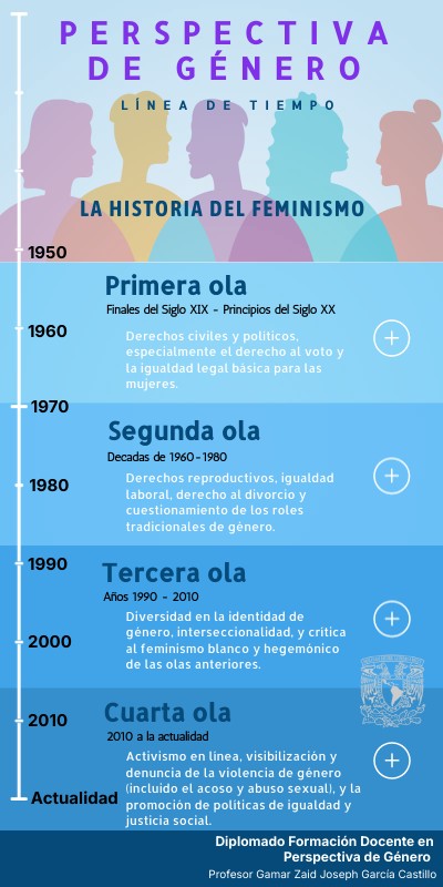 Contexto: Esta ola surge como una respuesta a lo que algunas mujeres veían como las limitaciones del feminismo de la segunda ola. Las mujeres jóvenes, especialmente las de minorías étnicas y sexuales, buscan redefinir el feminismo de una manera más inclusiva y diversa.Logros clave: Interseccionalidad: Introducción del concepto de interseccionalidad por Kimberlé Crenshaw, enfatizando que el género se cruza con otros aspectos como raza, clase y orientación sexual en la experiencia de opresión. Empoderamiento: Se busca que cada mujer defina su feminismo, considerando su identidad y contexto, y se promueve la autoaceptación y la libertad de expresión. Derechos LGBTQ+: Creciente apoyo a los derechos de las personas LGBTQ+, reconociendo que la lucha por la igualdad de género también incluye diversidad de orientaciones sexuales e identidades de género. Figuras Destacadas: Audre Lorde, Judith Butler con su teoría de performatividad de género y bell hooks, quien habló de la intersección entre raza, género y clase.