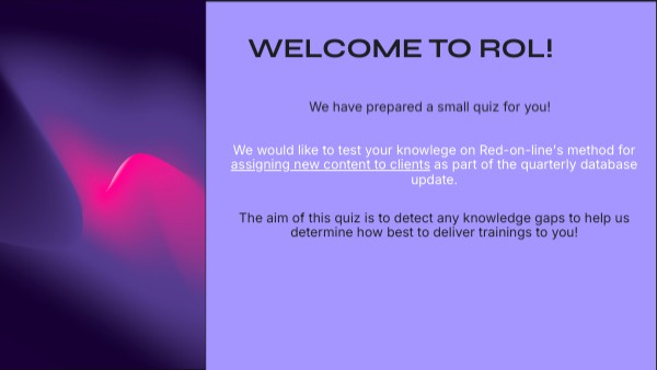 We would like to test your knowlege on Red-on-line's method for assigning new content to clients as part of the quarterly database update.