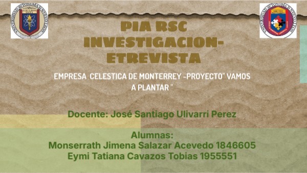 La Responsabilidad Social Empresarial (RSE) es cuando las empresas hacen cosas buenas por la sociedad de forma voluntaria, para ayudar a que la sociedad crezca y sea mejor para todos.Esto significa pensar en cómo lo que haces afecta a la gente a tu alrededor y a quienes trabajan contigo, tanto en aspectos sociales, como en el medio ambiente y en lo económico.Celestica de Monterrey es una empresa mexicana que se dedica a la maquila de productos electrónicos y eléctricos, donde se construyen productos y soluciones para marcas líderes en diversos mercados, como el aeroespacial, la defensa, la tecnología de la salud y la energía inteligente.En el la cual se aplica la Resposabilidad Social dentro de esta , por el cual motivo desarrollaron un proyecto llamado "Vamos a Plantar" que tiene como objetivo fomentar la cultura de la resforestacion de sus trabajadores y la comunidades aledañas , el cual se esta realizado actualmente. En donde las alumnas Eymi y Monserrath realizaron una estrevista por medio del Teams a la Empeleada del Lugar Tania Maldonado.