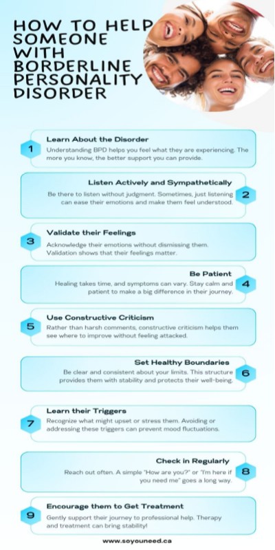 Check out this one to learn how to deal with BPD patient and understand how supporting someone with BPD makes a difference in their life. Visit At- https://soyouneed.ca/services/focus-area/bpd-therapist-coaching-counselling/