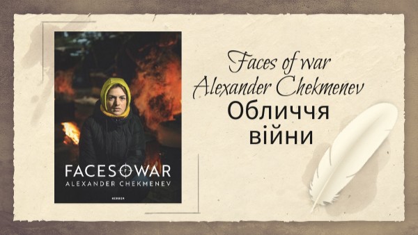 Faces of War Олександра Чекменьова Faces of War (Обличчя війни) — фотокнига Олександра Чекменьова, яка документує наслідки російського вторгнення в Україну. Видання складається з двох частин. Перша частина включає 24 портрети киян, опубліковані в The New York Times Magazine на початку війни в 2022 році. Друга частина книги складається з 53 портретів людей, які пережили окупацію. «Їхні історії є свідченням воєнних злочинів, скоєних російськими окупантами проти мирного населення України», — зазначив Олександр Чекменьов.Видання здійснено за підтримки MOKSOP.